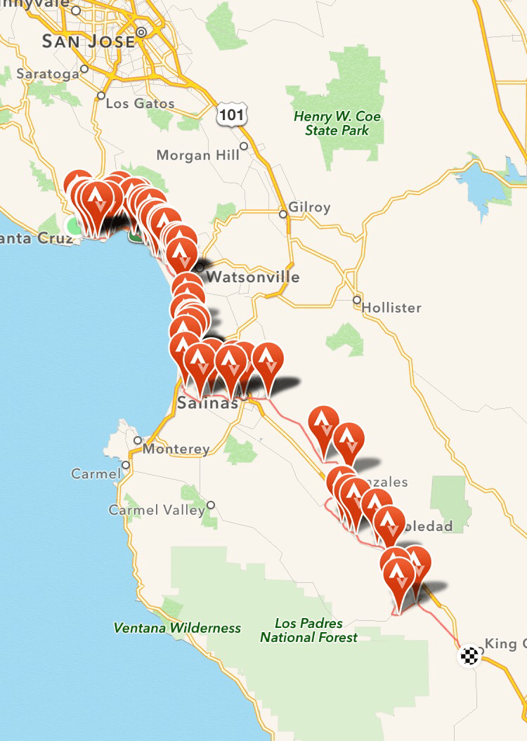 So, today is the first time I’ve ridden 100+ miles in a few years. The good news–I can’t remember having more fun! Today was a spectacular day! We made our way out Santa Cruz south through the Salinas valley and into King City.