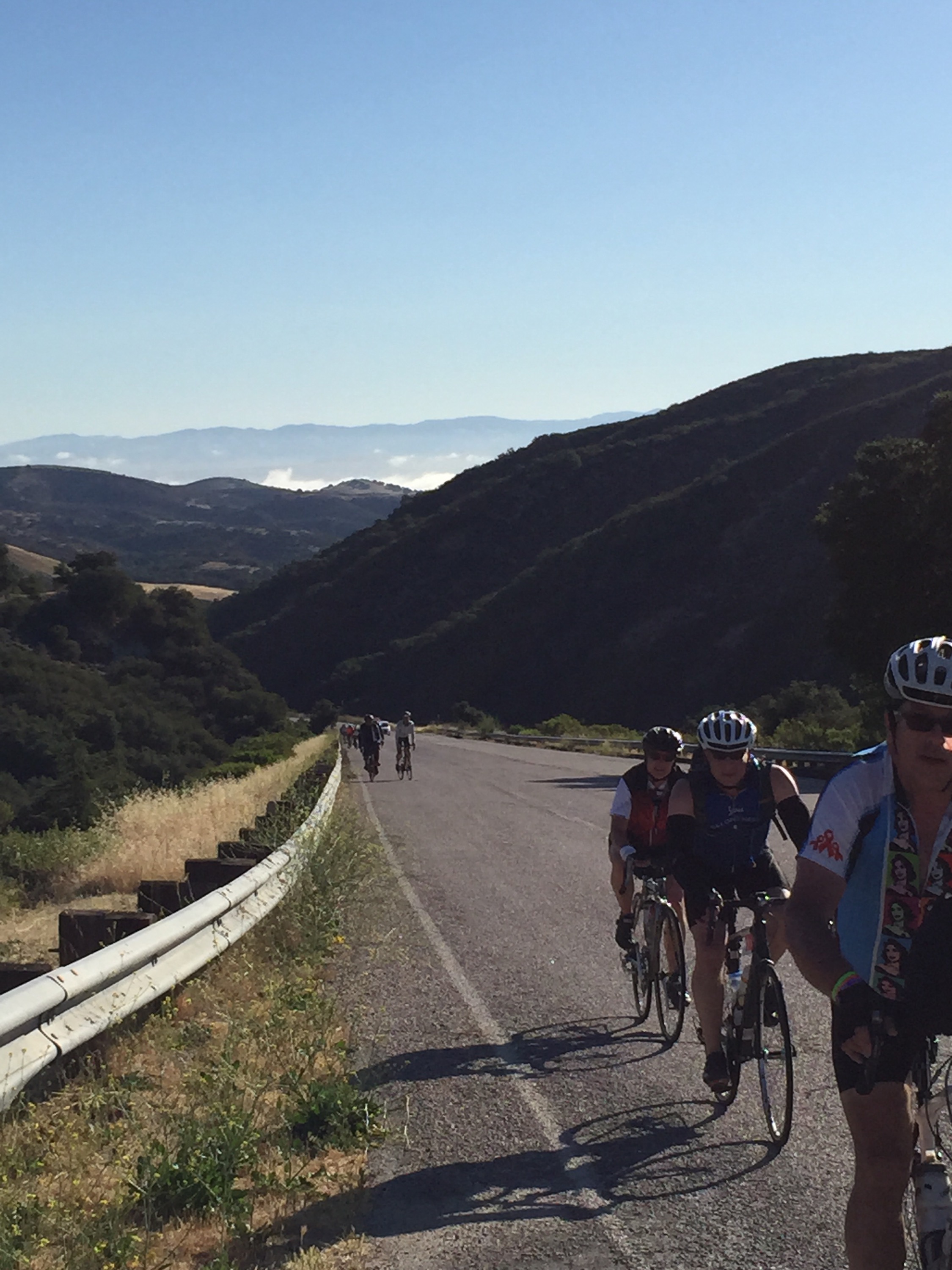 Well, it’s day three. I made it all the way to San Luis Obispo. We left the cool coatline and started moving inland. We came in through some beautiful central coast vineyards and got to ride along some of the beautiful open plains of California. It was a short ride around 66 miles. Today’s temperature was somewhere in the mid to high 80s.