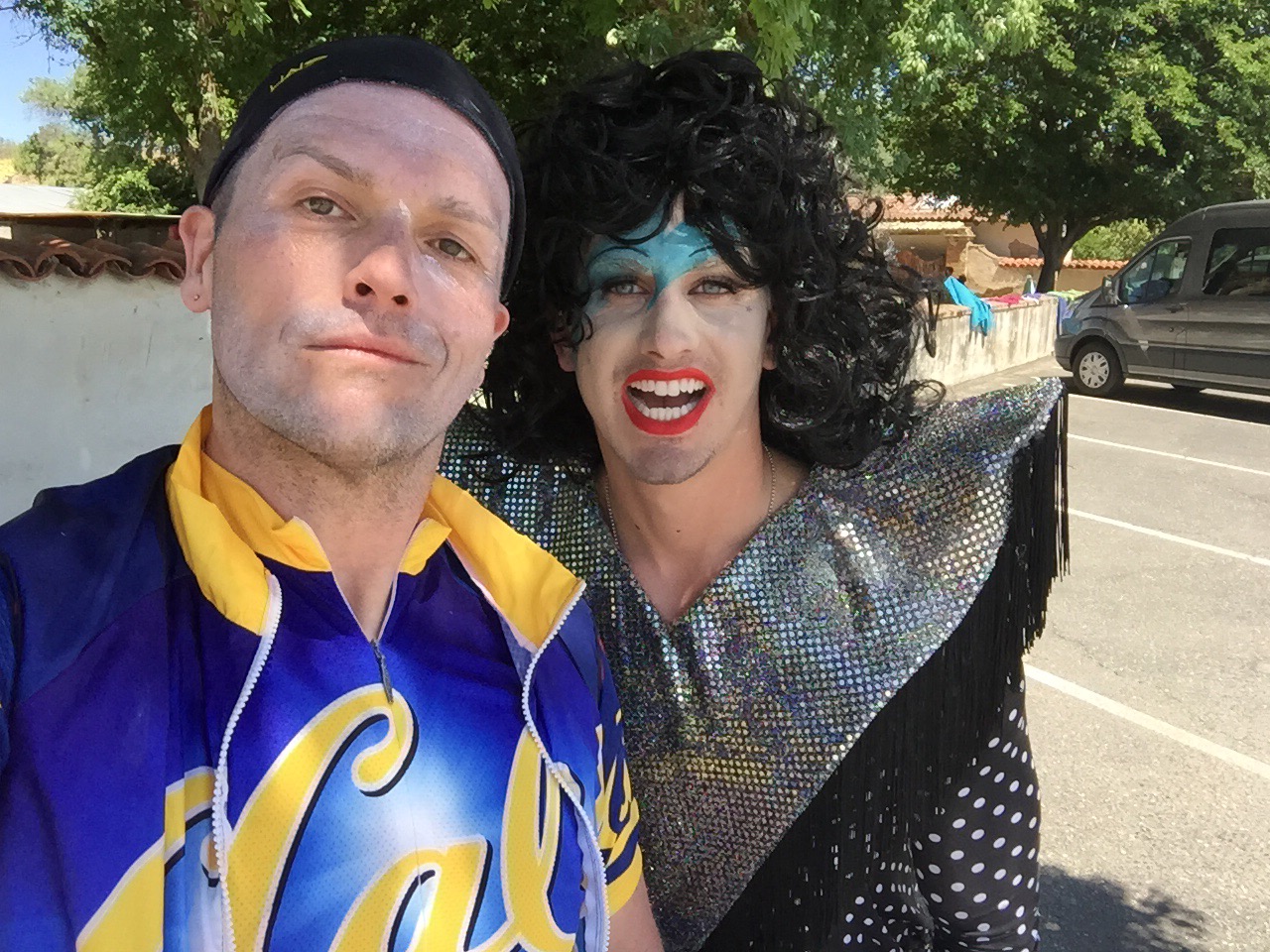 Another highlight of the day is Rest Stop 4 which is located at the Mission San Miguel. Because of the short ride, cyclist get to the rest stop quite quickly. So it fills quickly, but not because it’s a short day–because there is always a great show to be had by the rest guys. This year’s theme Jem And The Holograms…and it didn’t disappoint. Check out the videos below to see their dress rehearsal.