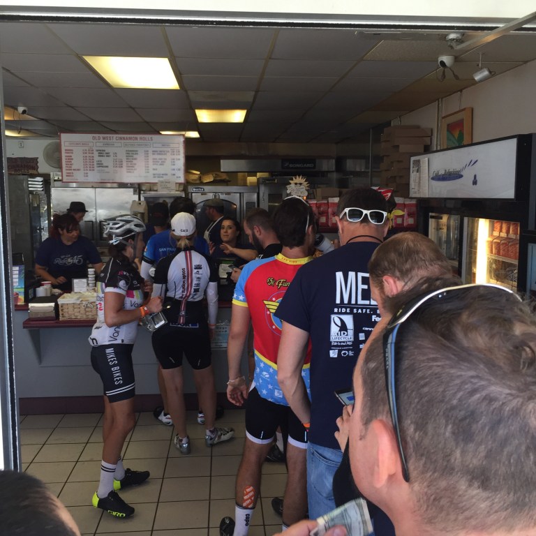 3. Today also featured one of my favorite stops…cinnamon rolls in Pismo beach. No joke, I’ve been dreaming about these rolls for the last three years. They were so good I bought an extra one and stuffed in my jersey pocket for the ride to camp.