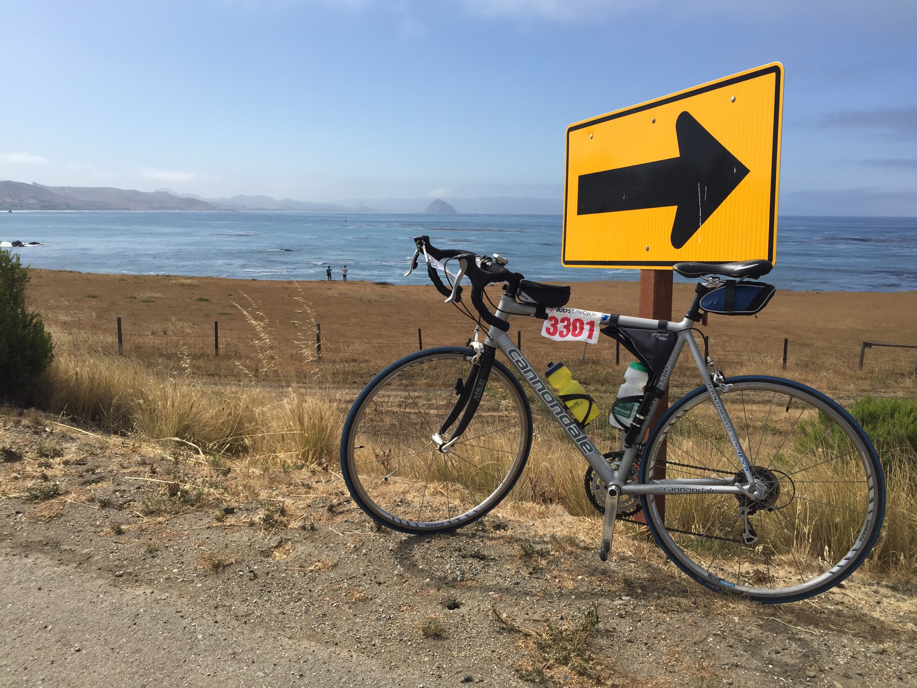2. Today featured an amazing climb that led to the halfway point of the ride. The climb is called the evil twins because it features two separate climbs to get all the way to the top. Once there, you have a beautiful view of the California coast all the way down to Morro Bay. The climb itself feature beautiful views of the California coast range. Once at the top, we were at the halfway point between San Francisco and LA. Then we had a fantastic 3 mile downhill ride. 48 miles an hour on the bike.